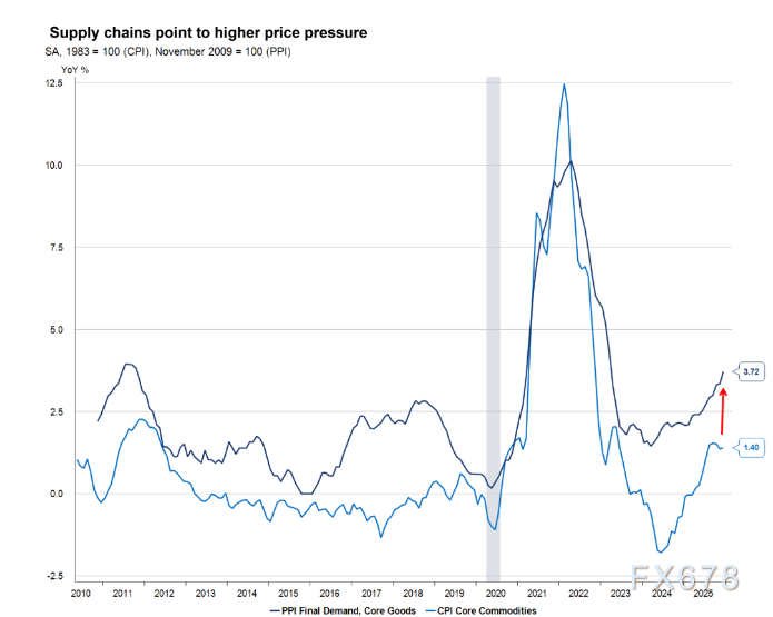 值得重点关注的是,2025年12月生产者价格指数(PPI)显示,关税带来的价格压力仍在供应链传导过程中,并将在2026年持续推高终端消费价格,这也是近期众议院金融服务委员会中玛克辛·沃特斯贡献名场面,当场对委员会主席大喊:“能不能让他闭嘴,他指贝森特的原因之一。